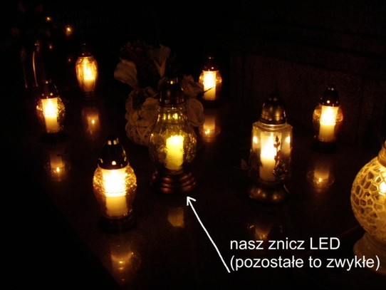 Jeśli zamawiają Państwo znicze, to polecamy nasze nowe znicze LED (w naszym sklepie 30 i 40zł), wkład w tym zniczu nie przypomina tradycyjnego LED-